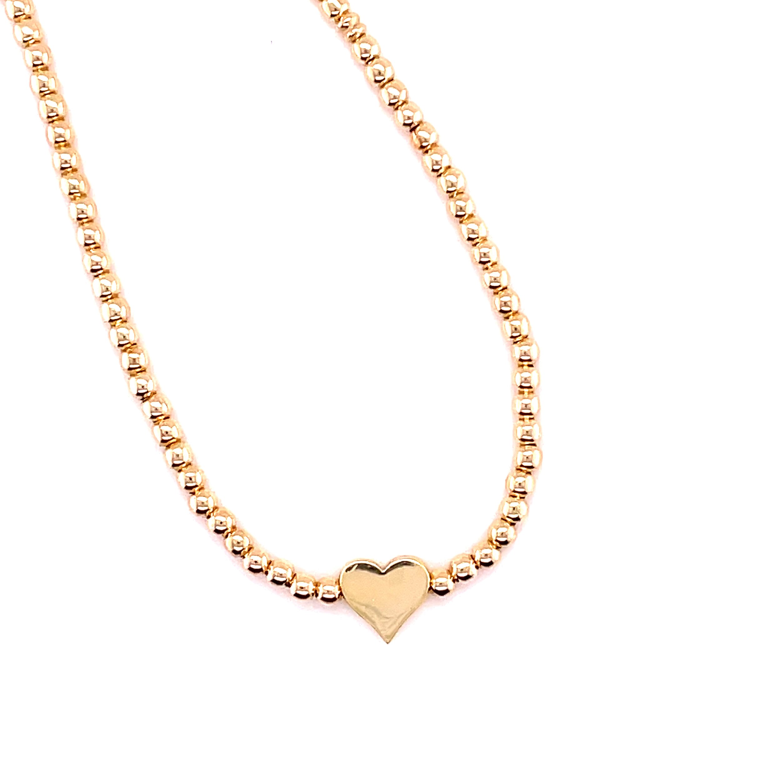 14kt Yellow Gold filled micro beads with a heart bead in the center.